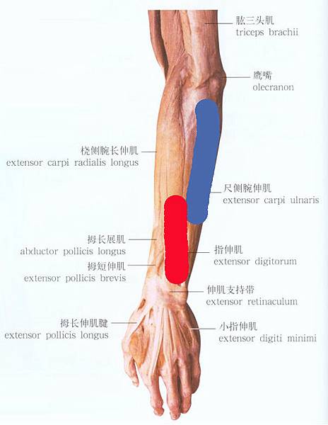 通常來說痠痛點都位於橈側伸腕短肌以及指伸肌兩個位置